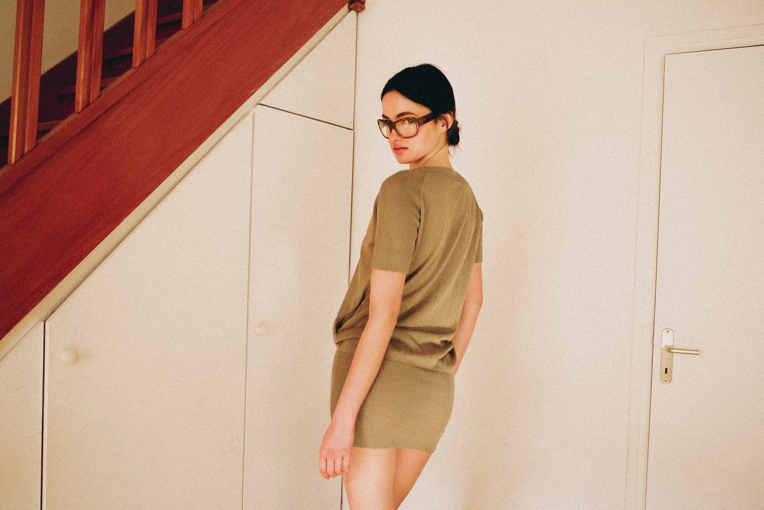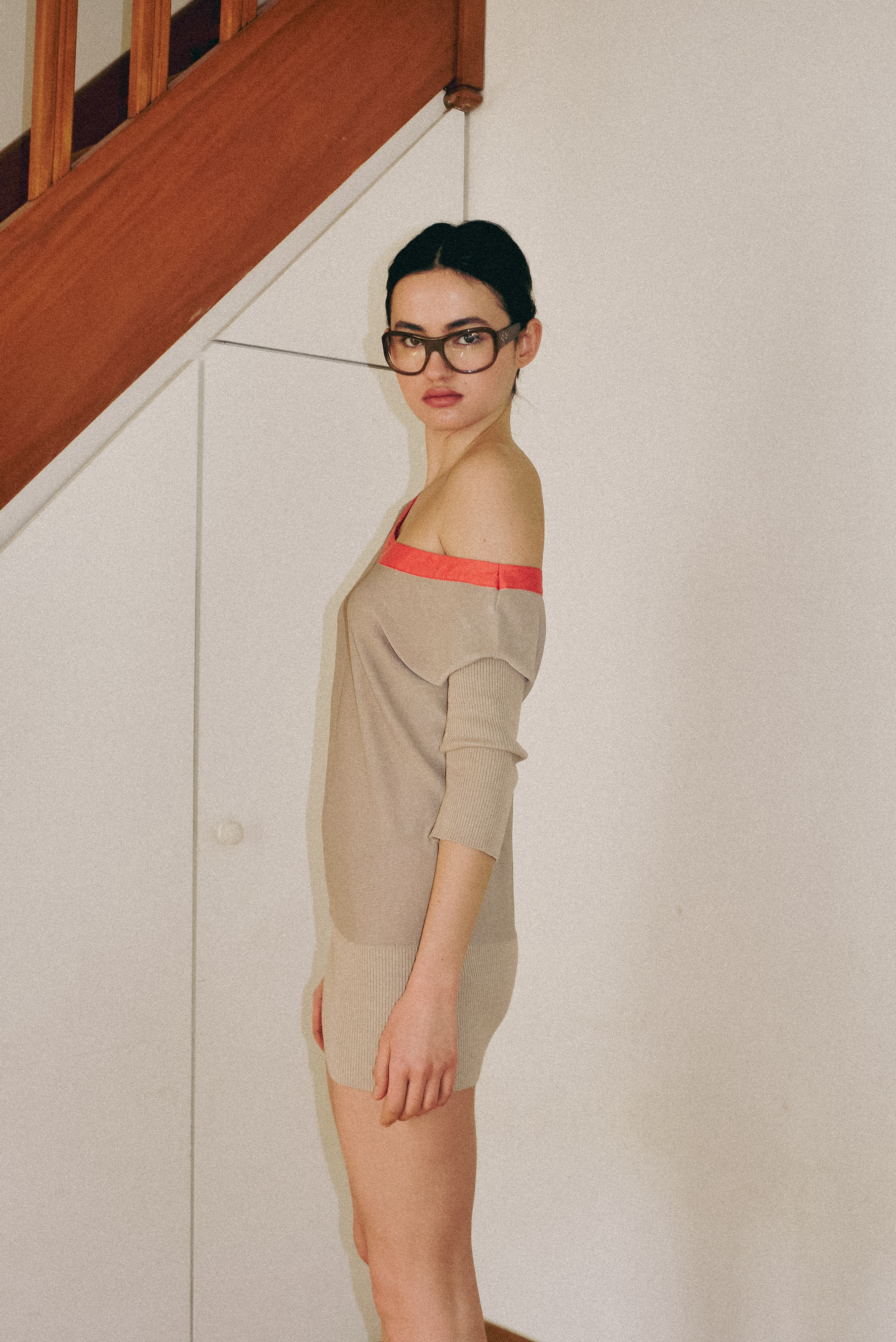 Beige Knit Dress with Pockets