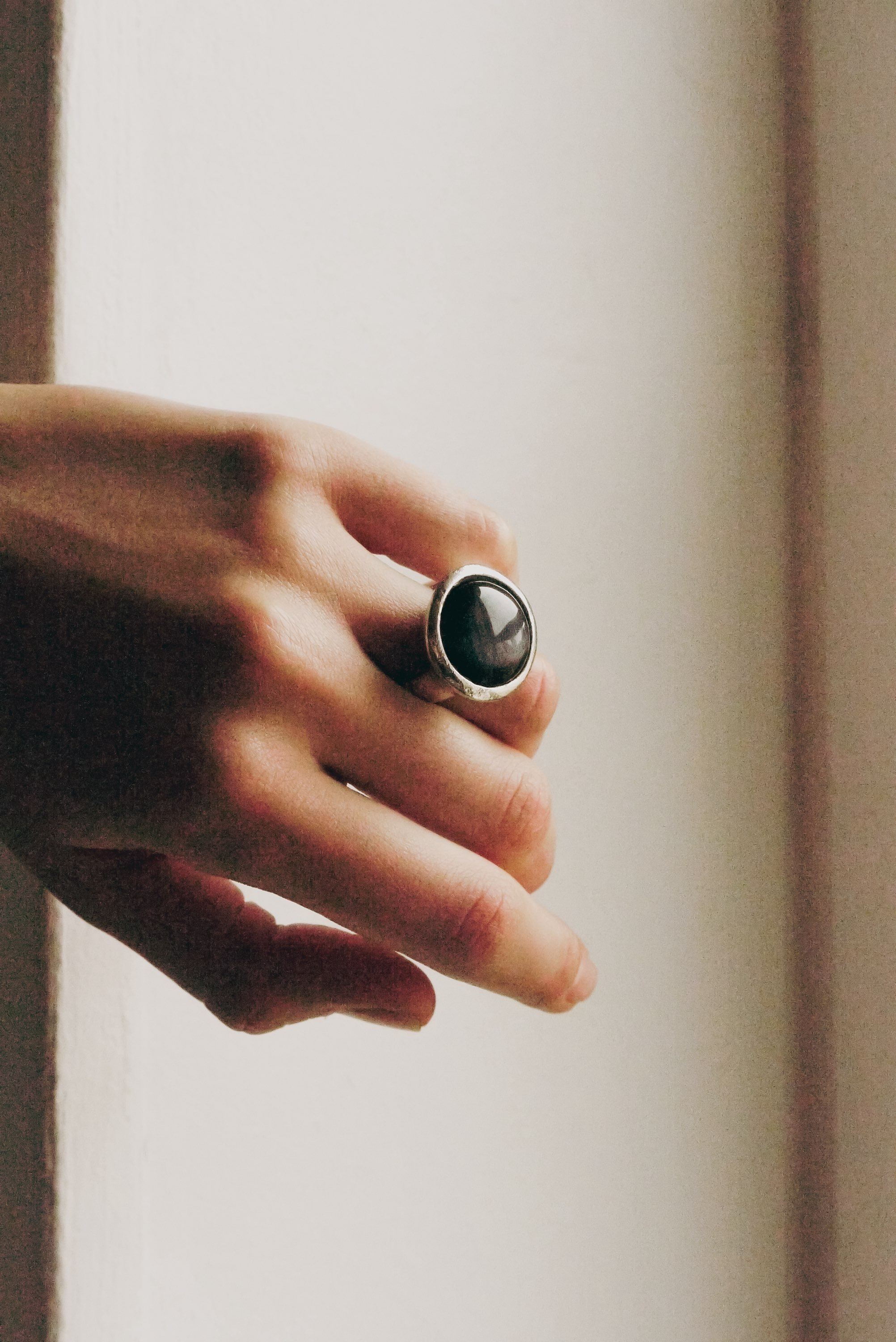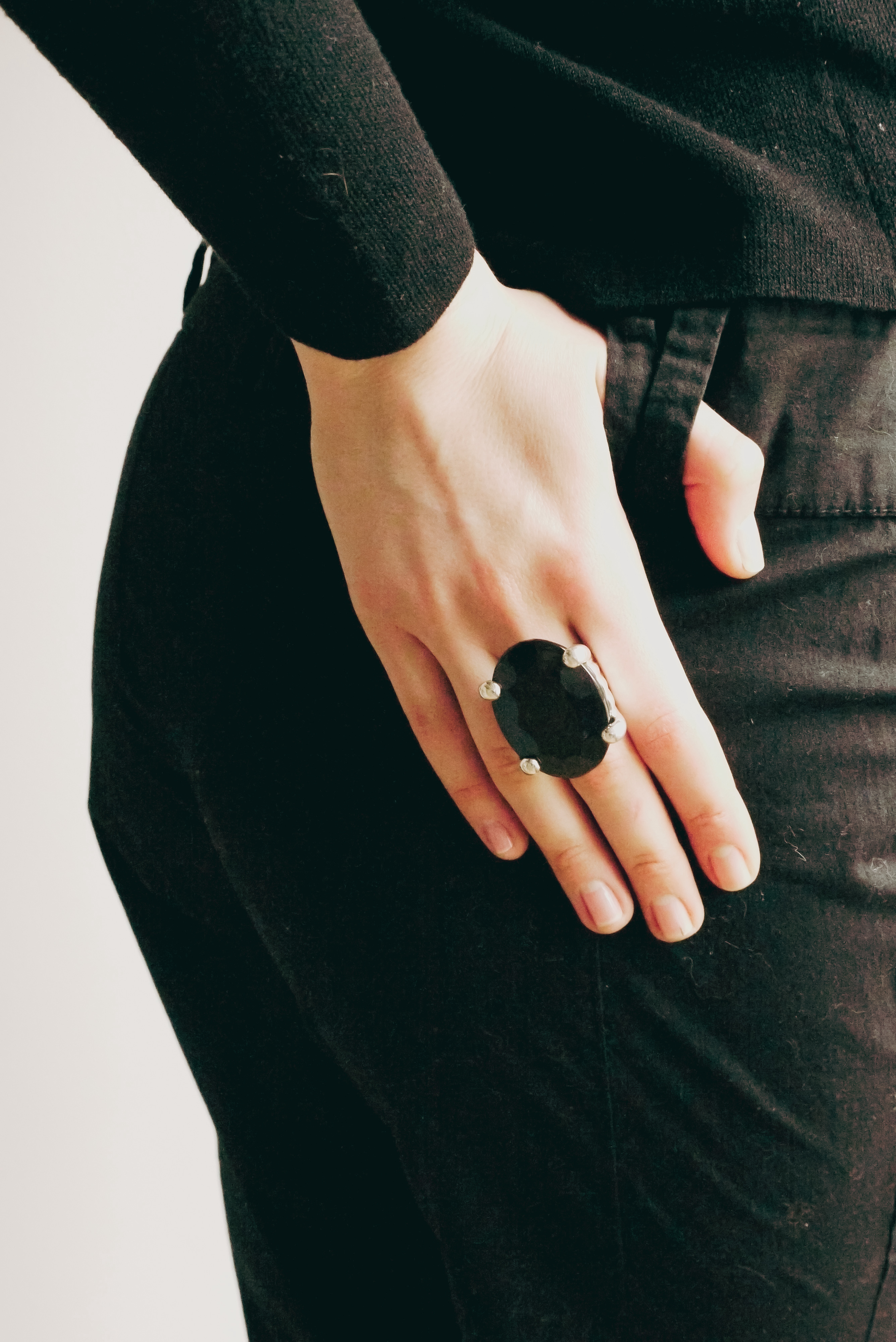 Large oval black stone ring