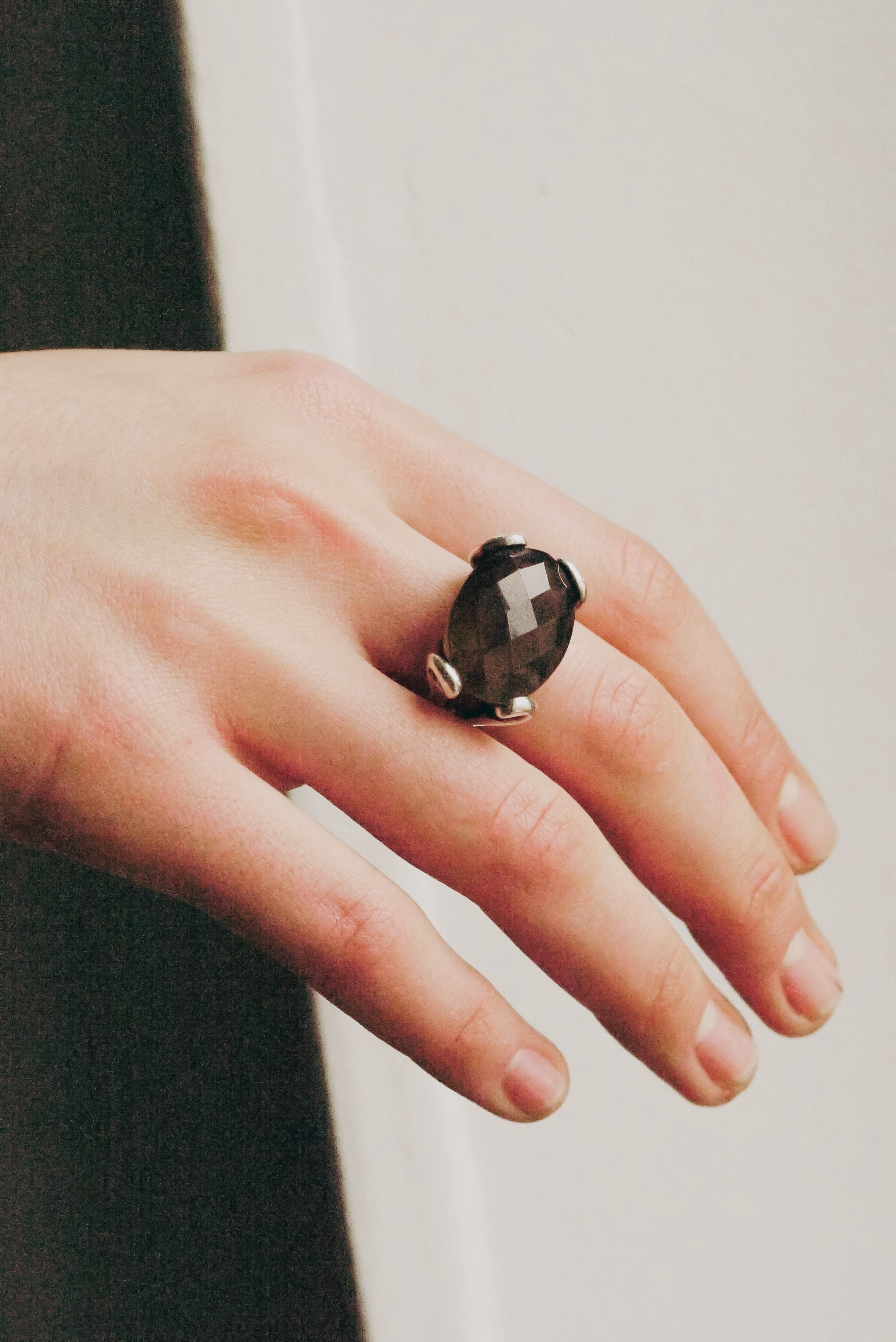 Multi-cut dark brown stone ring